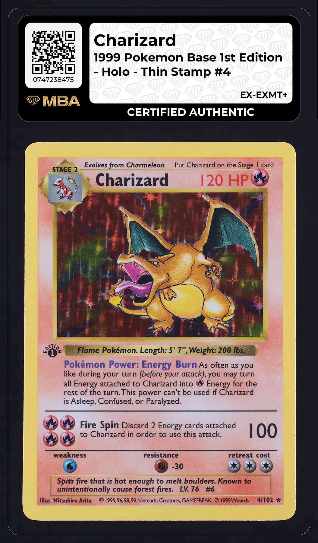 1999 Pokemon Base 1st Edition #4: Charizard - Holo - Thin Stamp