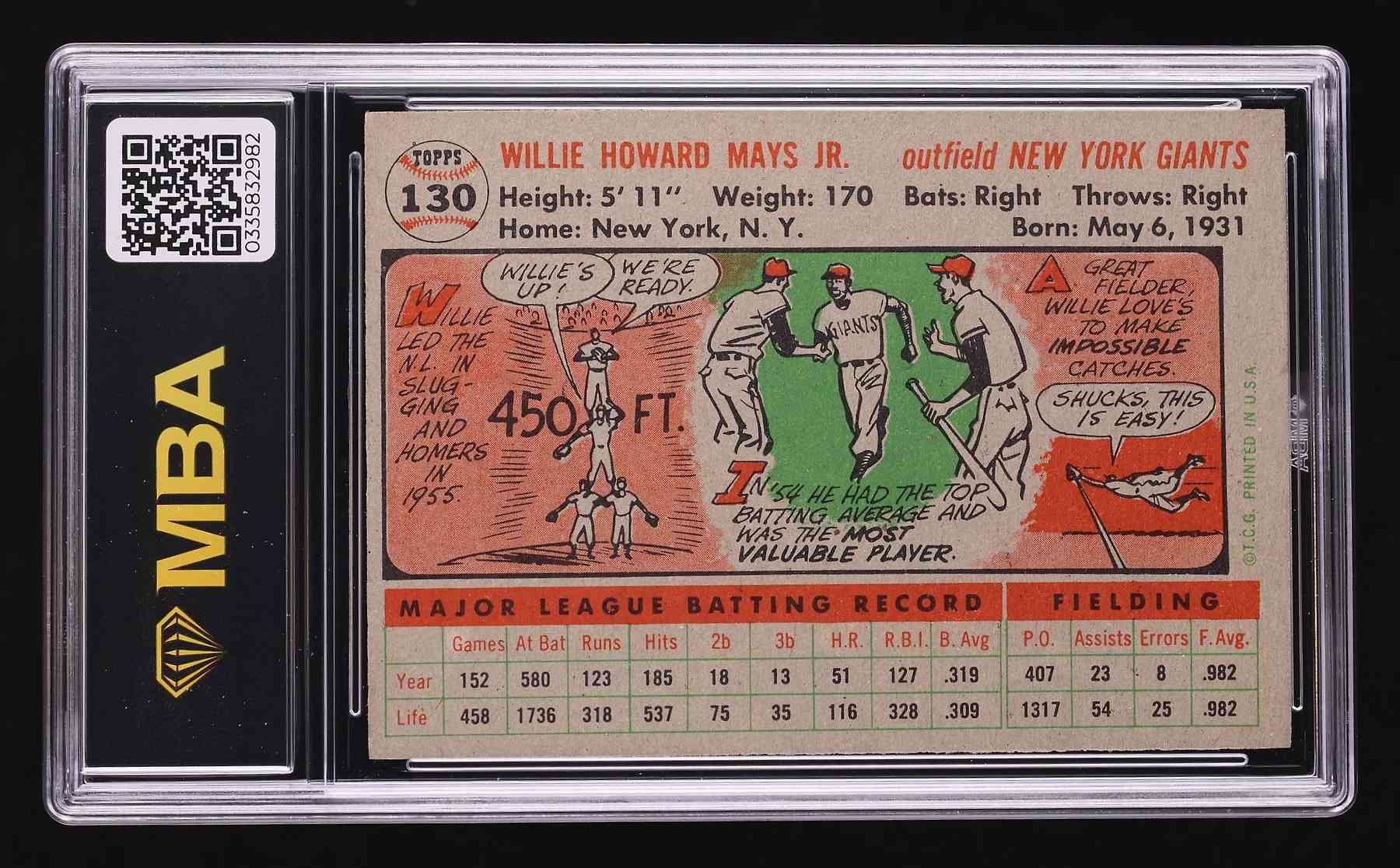 1956 Topps #130: Willie Mays